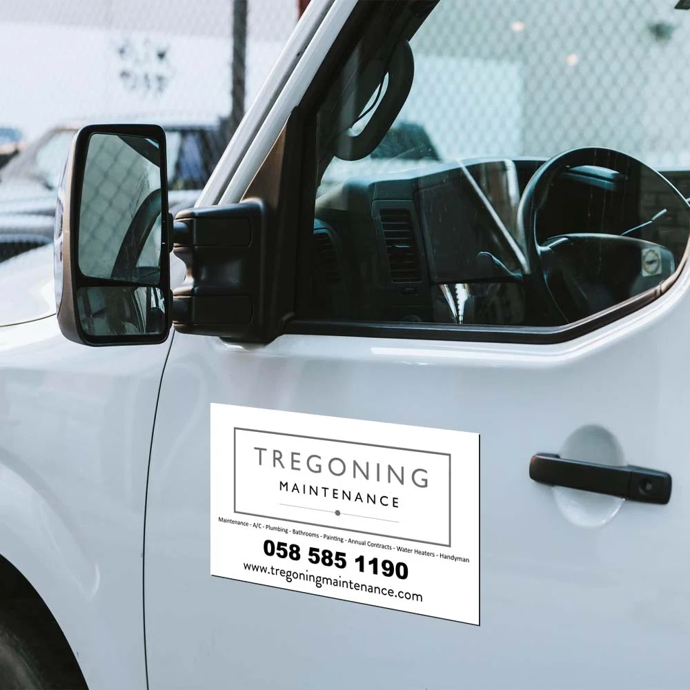 Transform your vehicle into a moving billboard with custom car magnets. Designed for temporary or permanent branding, these magnets are great for delivery services, tradesmen, freelancers, and mobile businesses.