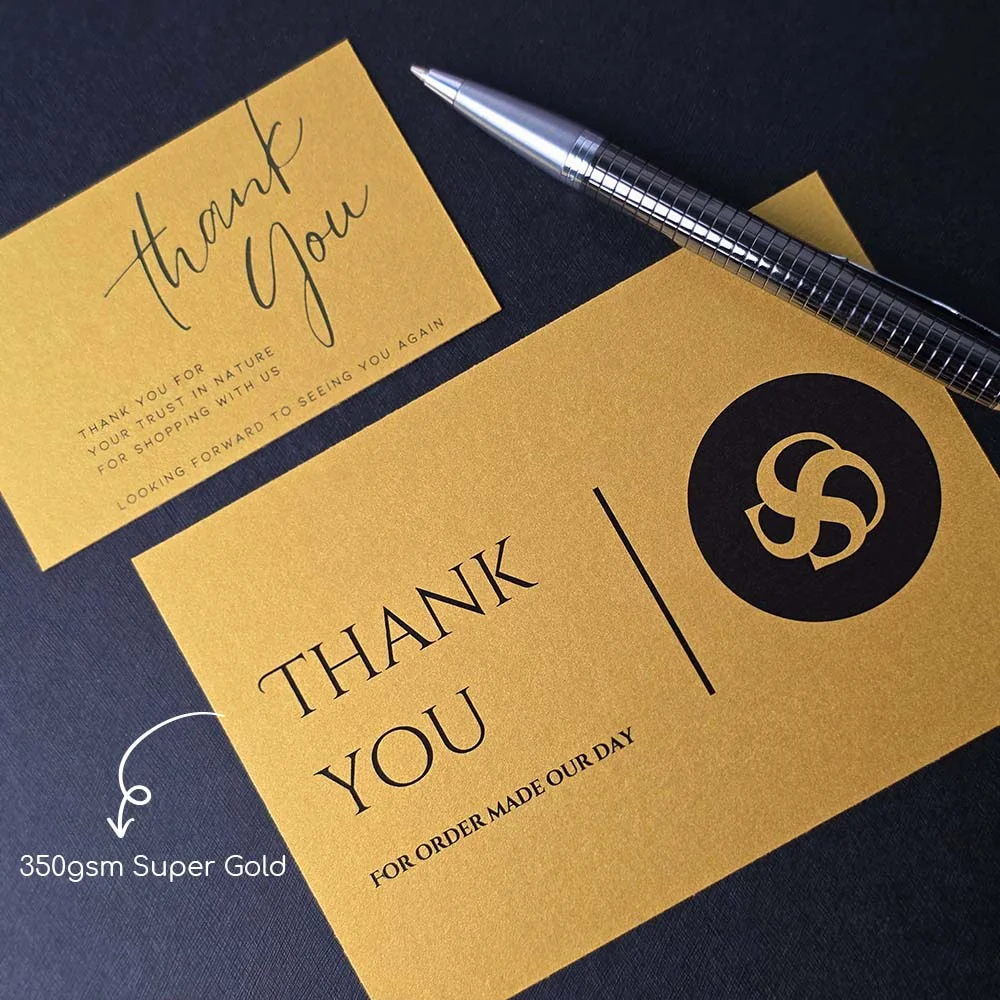 Available in white card with gold and silver shimmer or a full gold base, metallic business cards are ideal for real estate professionals, fashion brands, financial consultants, event planners, and corporate executives who want to leave a lasting mark. Printed on thick 300gsm card stock..