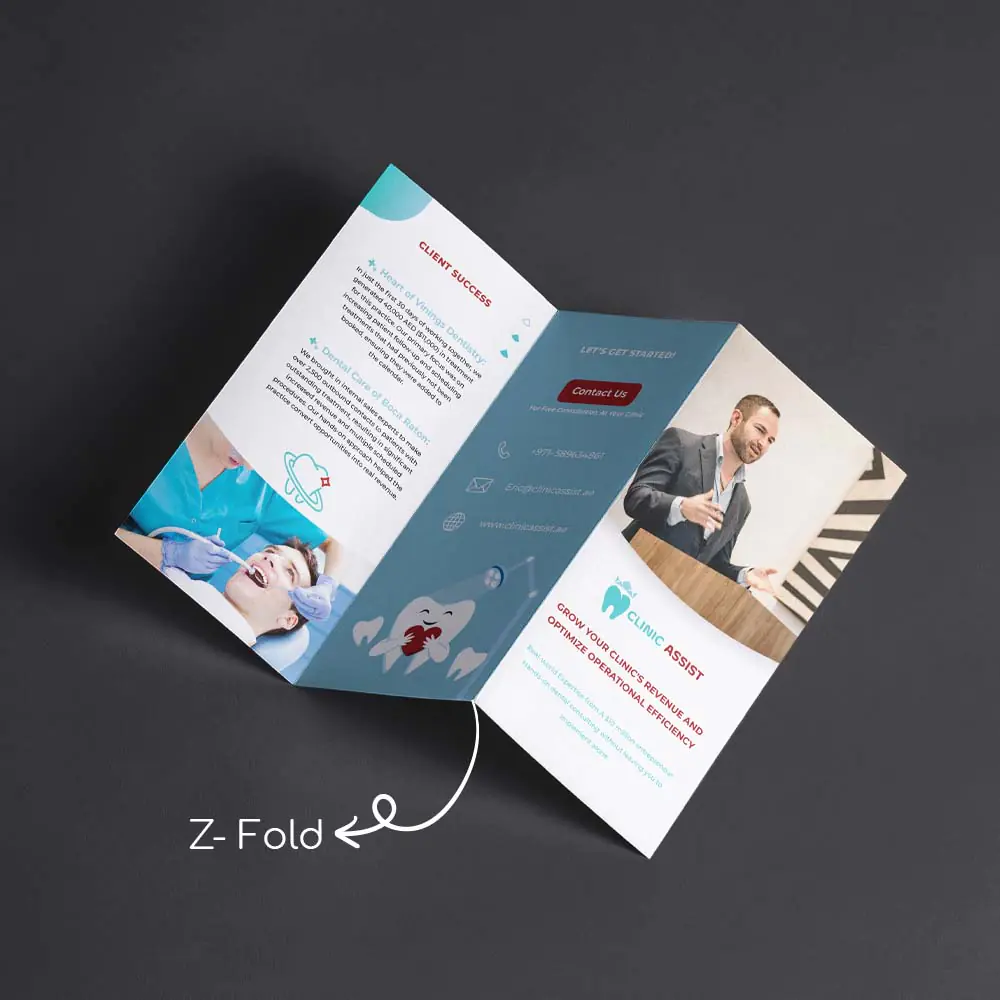 Inform, impress, and influence with professionally printed brochures. Whether you're launching a new product, showcasing services, or summarizing your company profile, brochures are a versatile, portable, and impactful marketing tool. We offer a wide range of fold styles including bi-fold, tri-fold, z-fold, and gate fold to match your design needs. Available in A3, A4 & A5 sizes our brochures are printed on high-quality 135β150gsm coated or recycled stock. Perfect for exhibitions, real estate, retail, medical, education, and corporate sectors. Whether youβre handing them out in person or inserting them into packaging, brochures offer a strong return on investment. With sharp printing, smooth folding, and fast turnaround across the UAE, your brand gets a professional edge. Elevate your marketing material with brochures that inform, engage, and convert.