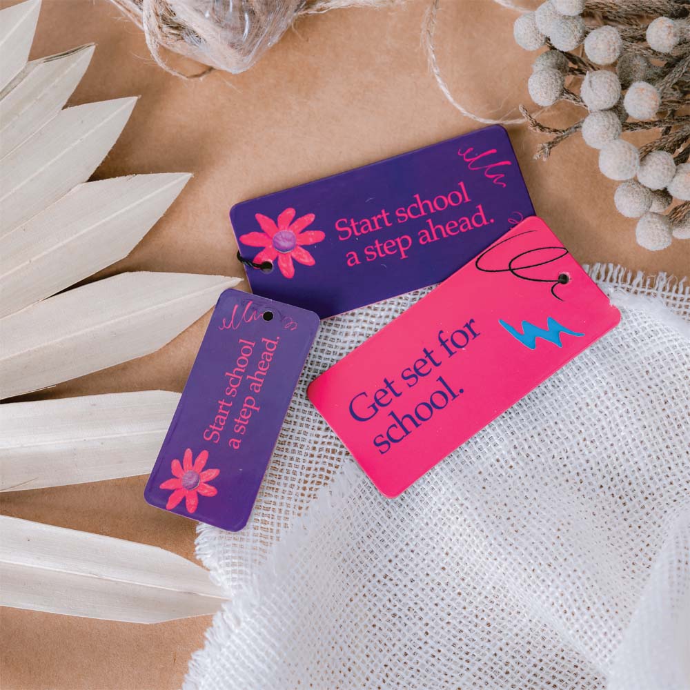 Double-sided folded hangtags custom printed for clothing, gifts, and branding—ample space for details and design.